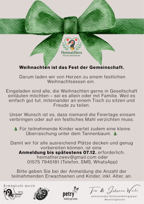 Mit ihrem ihrem ganz persönlichen Projekt "𝑯𝑬𝑰𝑴𝑨𝑻𝑯𝑬𝑹𝒁" möchten Tim und Johanna erreichen, dass Weihnachten wieder ein gefühltes Fest der Gemeinschaft ist und setzen damit ein wundervolles Zeichen in der Gartenstadt Wevelinghoven!